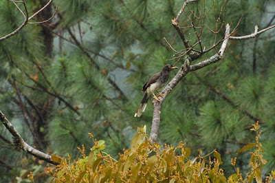 After lunch, we made a last trek up the mountain to the Los Robles trail. I badly wanted to see the rare and local Silvery-throated Jay which was a possibility along certain parts of the trail. As luck would have it, at one point we heard the raspy calls of something, it just HAD to a be a jay! We bolted uptrail and stood gazing up as over a dozen Silvery-throated Jays started to filter through the tree tops! I was completely ecstatic. (Getting their picture was another story though!!)